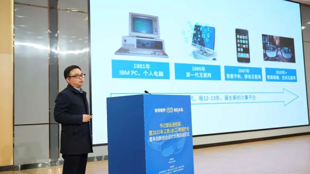 在热烈的气氛中,江风益院士团队、共青团江西省委、南昌大学、鹰潭市及余江区领导共同走上启动台,正式启动了2025年江西(余江)眼镜产业青年创新创业设计大赛。